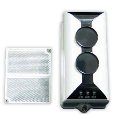 Barrera de detección de humo por haz de infrarrojos de Komttech. Cobertura de 7,5m hacia cada lado desde su eje y de 40 a 100 metros de distancia entre la barrera y el elemento de reflexión. El alineado se realiza manualmente utilizando reguladores para movimiento vertical y horizontal. El funcionamiento es por reflexión por lo que solo requiere cableado hacia un extremo de la barrera. Requiere alimentación de 24V y Zona convencional. No se recomienda el uso de más de una barrera por zona convencional.